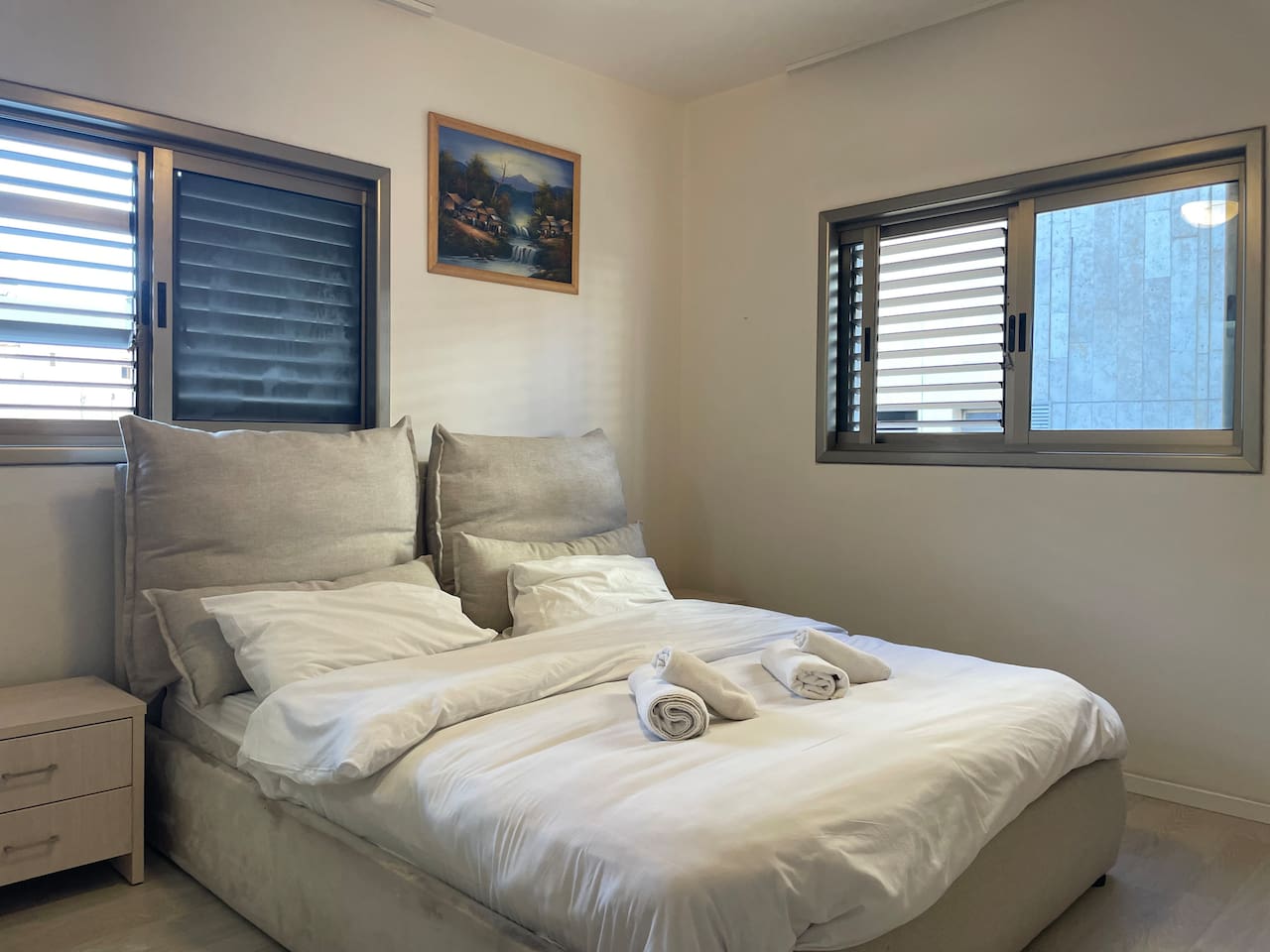 Welcome to our spacious and stylish 2-bedroom apartment in the heart of Tel Aviv. With private parking, and a balcony. The open and bright living area has a plenty of natural light. Master Bedroom: A generously sized with king-sized bed, and and bathroom for your convenience. Second Bedroom: Perfect for an adult couple or children. equipped kitchen has all you need during your stay. dining area for four. flat-screen TV or step out onto the private balcony to savor your morning coffee (: