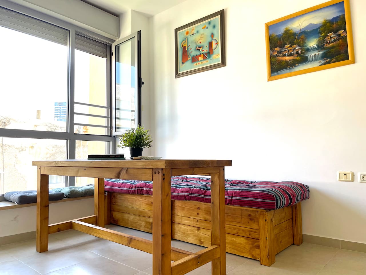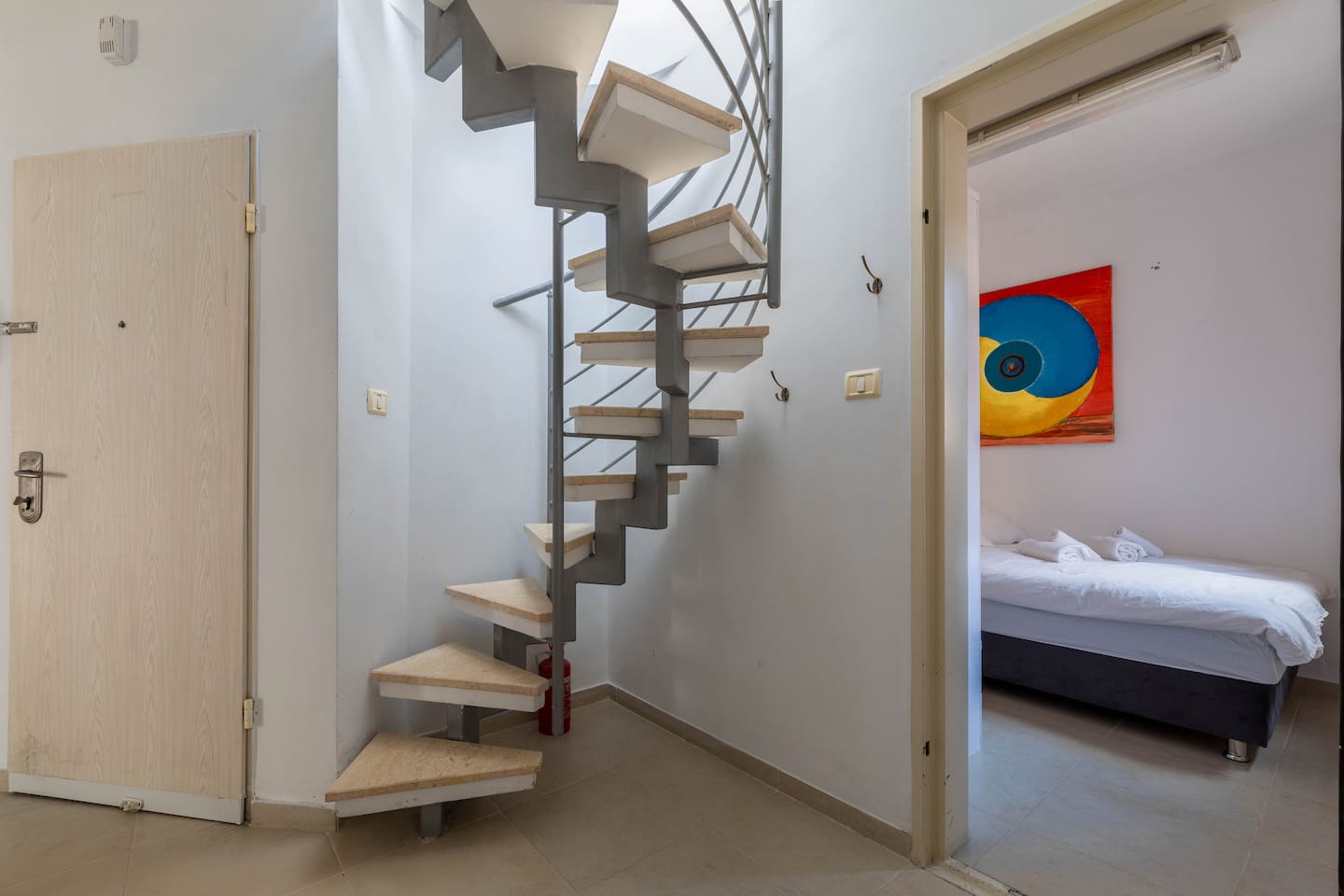 Our duplex apartment has stairs to go up to the master bedroom. המחירים באתר אינם כוללים מע״מ (18%) לאזרחים ישראליים Every guest is required to upload their ID prior to checking in!