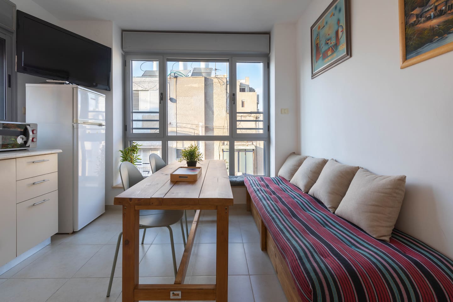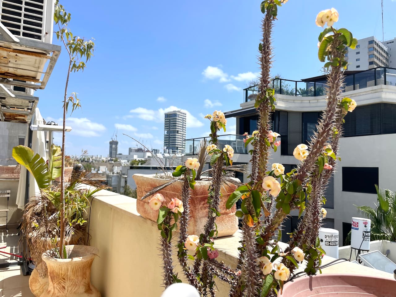 Welcome to our charming mini duplex in central Tel Aviv Just 5 minutes from the beach. This cozy retreat spans two floors, with two showers and toilets for added convenience. Enjoy stunning city views from two terraces, perfect for relaxation. The well-equipped kitchen, WiFi, and TV ensure a comfortable stay. Plus, a safety room provides peace of mind. Experience Tel Aviv's magic from our enchanting duplex – your home in the heart of the city.
